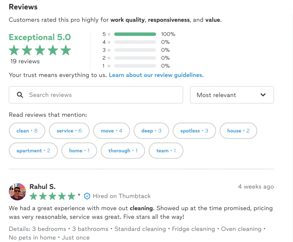 What to Look For: Ask for a detailed pricing breakdown based on your property’s size, cleaning frequency, and specific services. Ensure there are no hidden fees for add-ons like carpet cleaning or window washing.